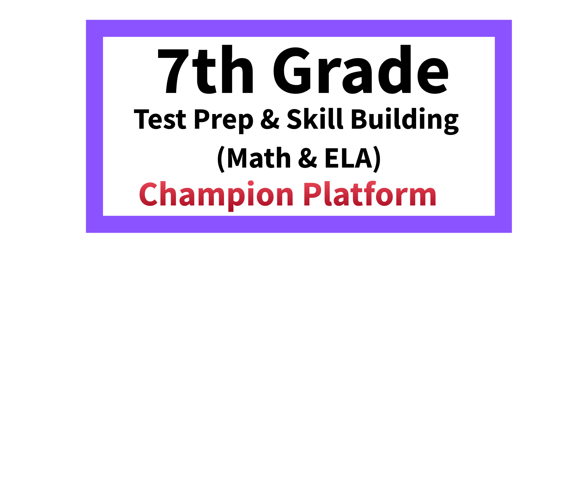 Champion: 7th Grade Test Prep & Skill Building (Math & ELA) is a structured program designed to strengthen students’ academic skills and prepare them for advanced middle school assessments and future standardized exams. This course focuses on building strong reading comprehension, writing, and mathematical reasoning through consistent practice and guided instruction. Students will engage with a variety of reading passages, including fiction, informational texts, biographies, and poems. Each passage is carefully designed to improve comprehension, vocabulary, and analytical thinking. Writing assignments will focus on short responses and structured essays using clear evidence from the text. The math portion of the course emphasizes problem-solving, logical reasoning, and mastery of key 7th grade concepts such as ratios, proportions, expressions, equations, and word problems. Students will develop accuracy and speed through targeted practice. Homework assignments are provided regularly to ensure continuous improvement and accountability. The course is designed with a gradual progression from foundational skills to more advanced challenges, allowing students to build confidence while improving performance. Champion is ideal for students who want to stay ahead in school, strengthen weak areas, and build the discipline needed for high-level academic success. With consistent effort and proper guidance, students will see measurable improvement in both Math and ELA.